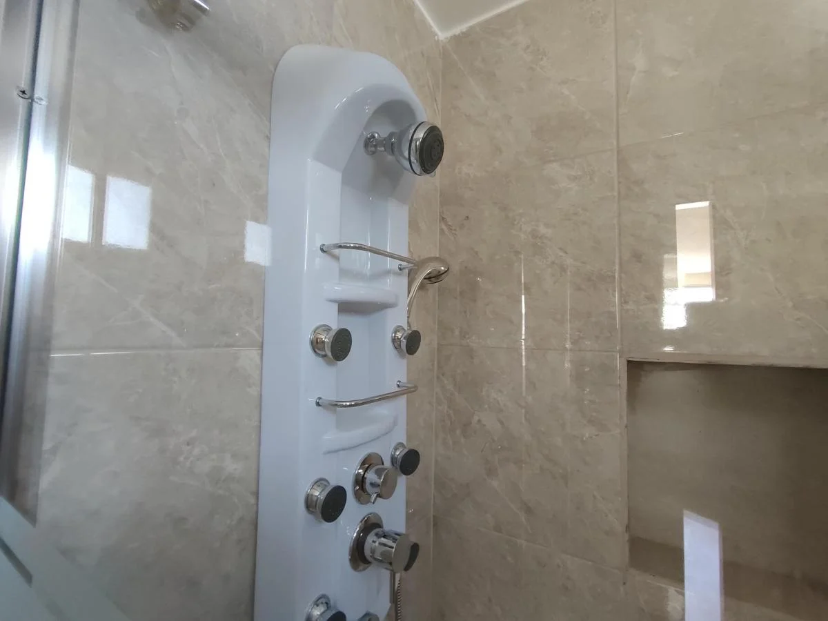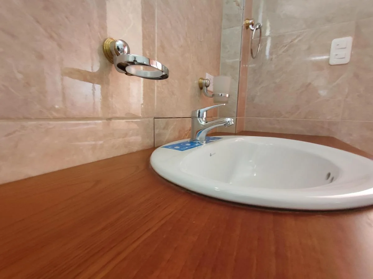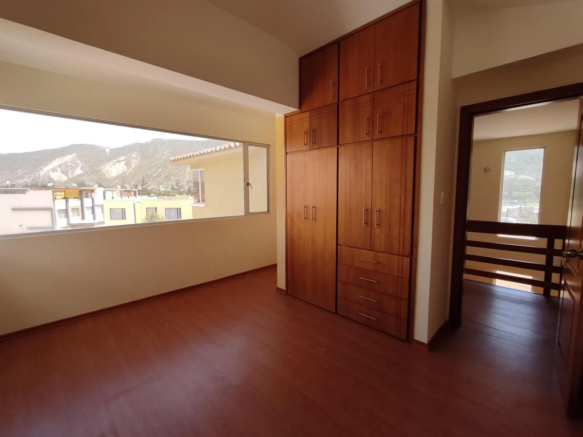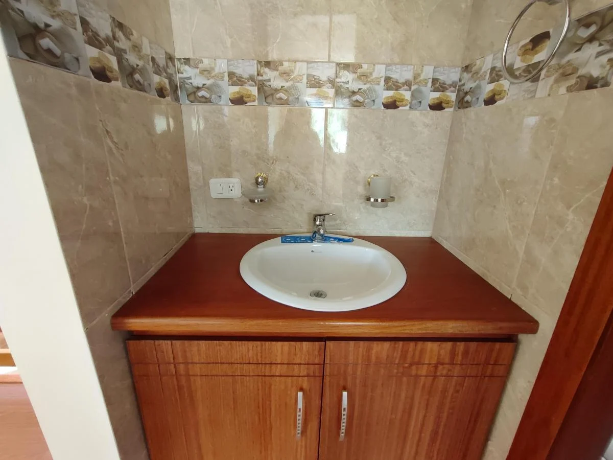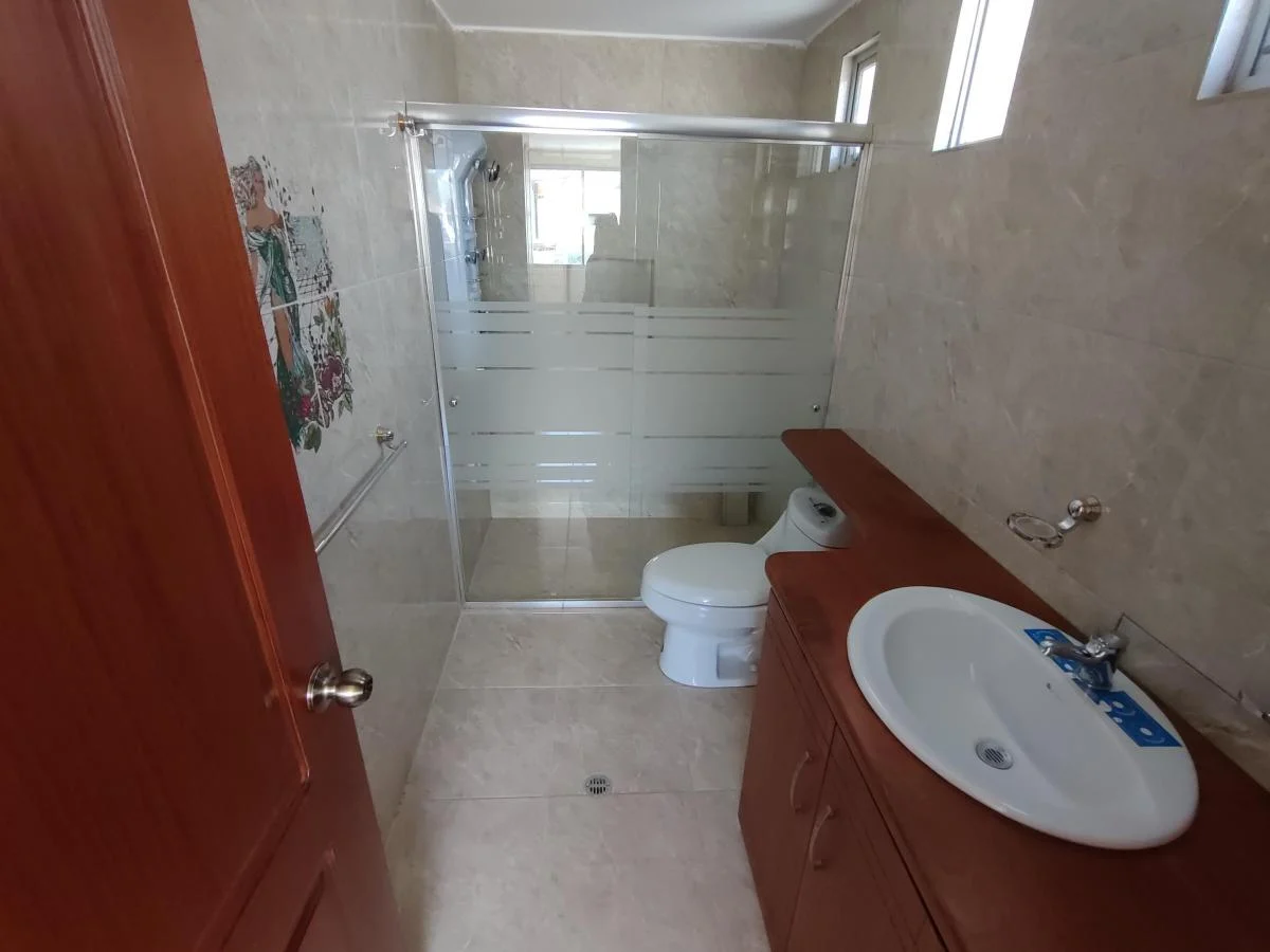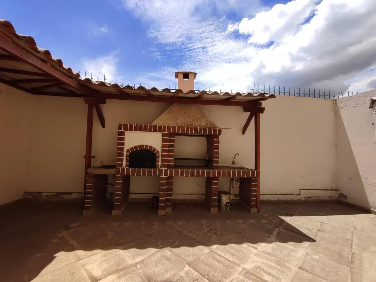Cocina equipada con muebles altos y bajos, mesones de granito y un desayunador.