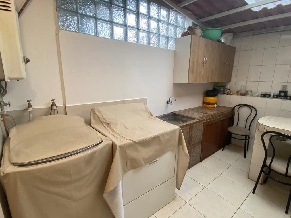 Sala, comedor, cocina con sus respectivos muebles, área de máquinas cubierto.