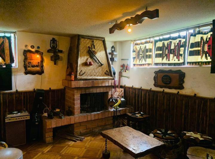 y donde encontramos una salita de estar con una chimenea funcional