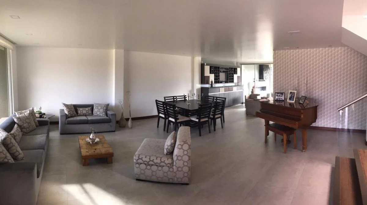 sala, comedor, cocina en concepto abierto