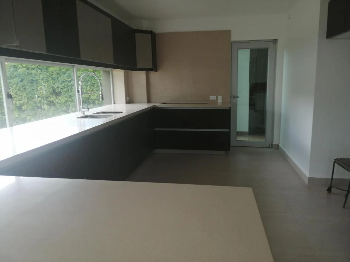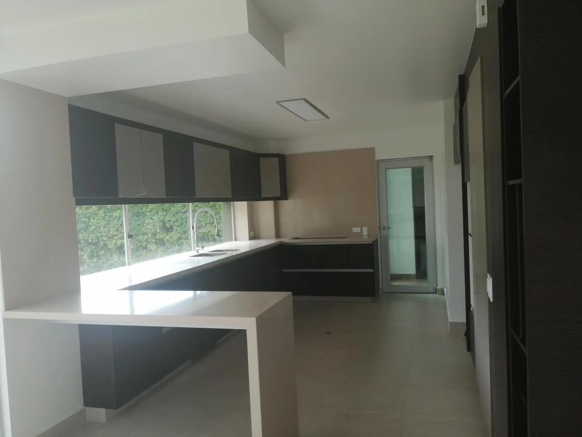 La cocina es espaciosa, con modernos muebles de almacenaje