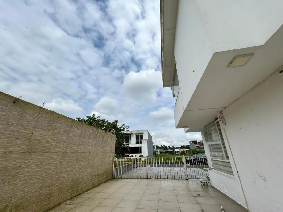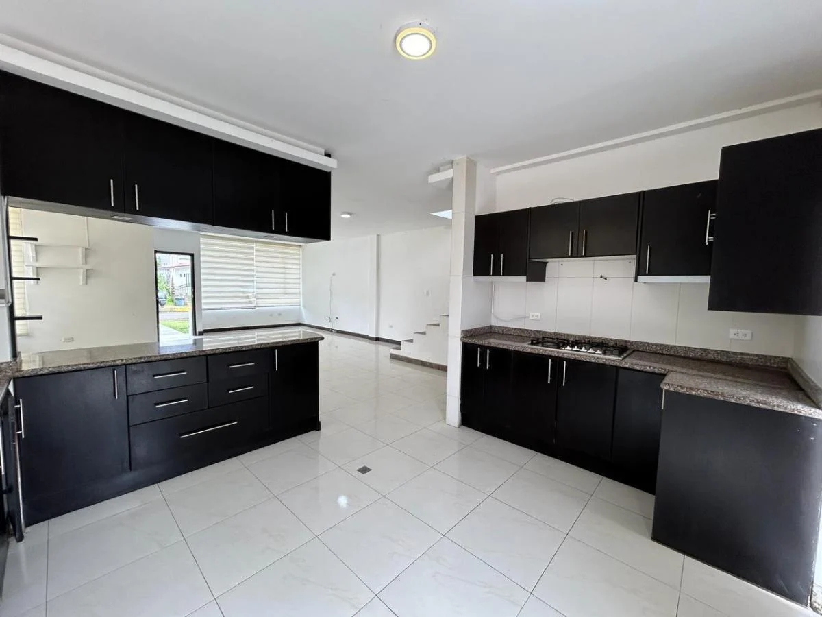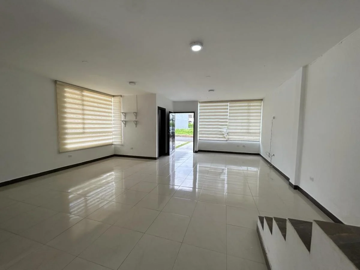 Área de terreno 288m Área de Construcción 250m (Aprox) Sala, Comedor, Cocina tipo Americano 3 Dormitorios 2 Baños 2 1/2 Baños (sociales) Piscina 3 Parqueaderos Área de BBQ Guardianía 24/7