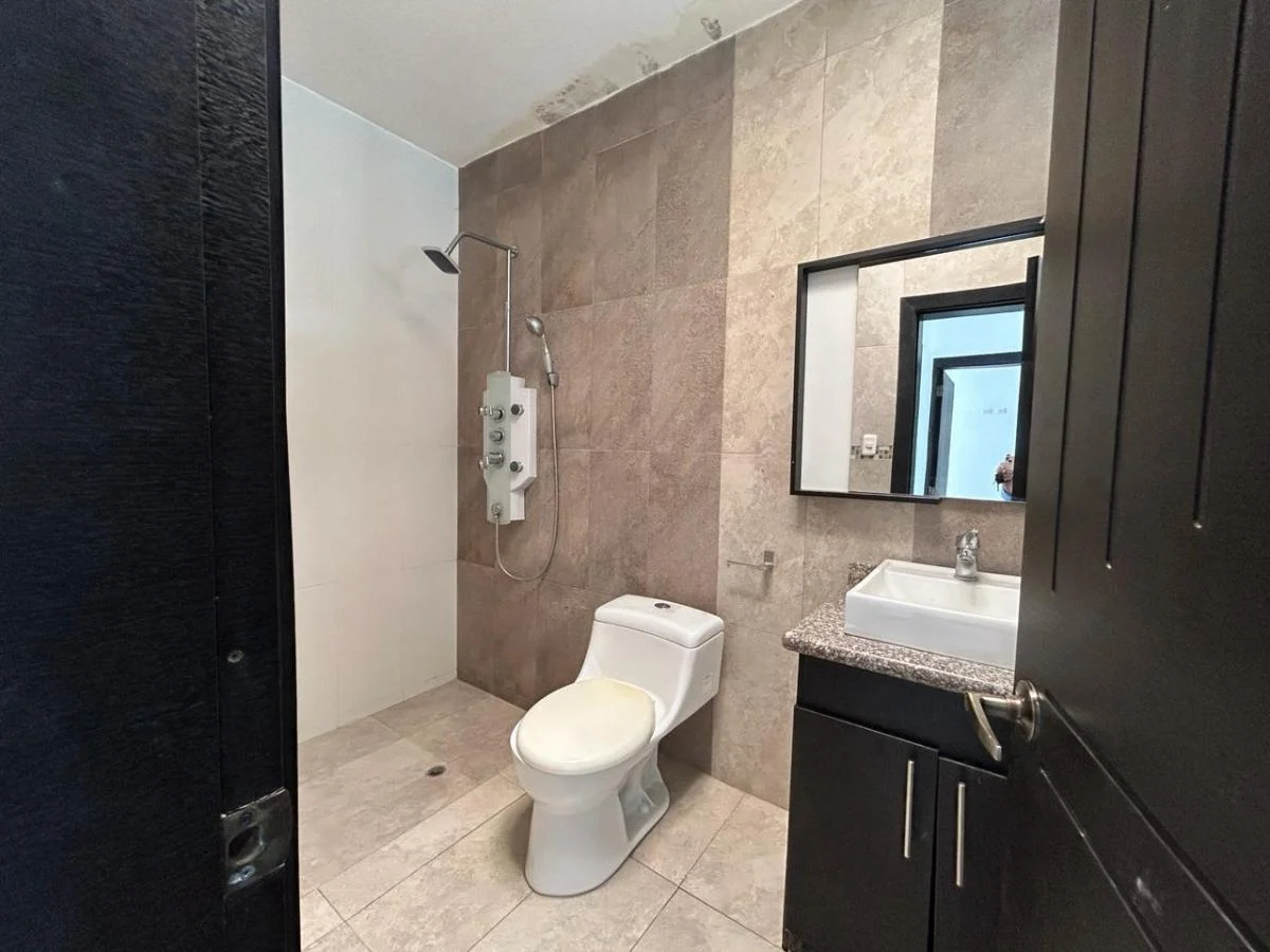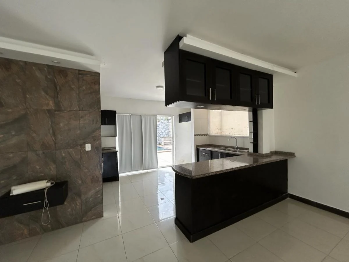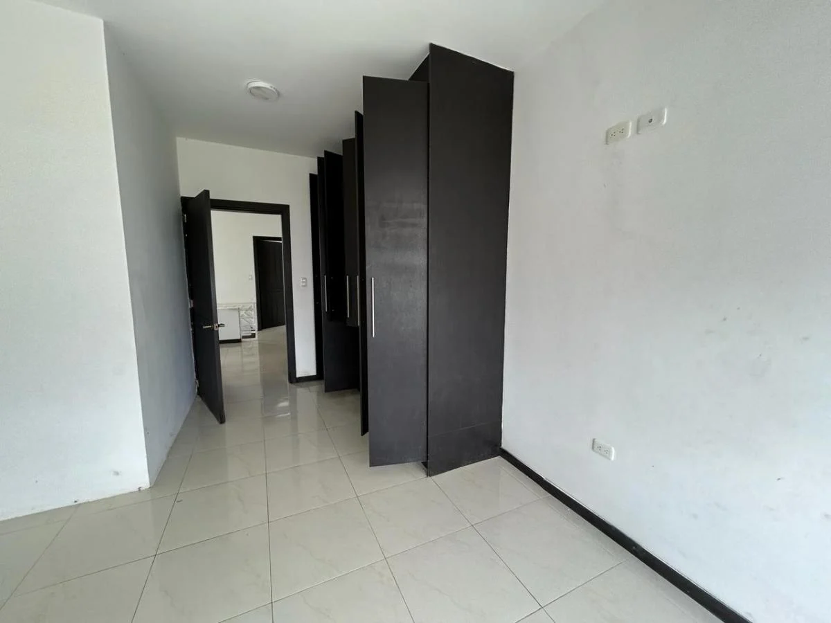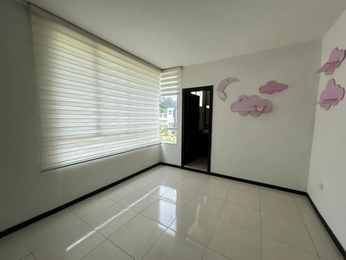 Área de terreno 288m Área de Construcción 250m (Aprox) Sala, Comedor, Cocina tipo Americano 3 Dormitorios 2 Baños 2 1/2 Baños (sociales) Piscina 3 Parqueaderos Área de BBQ Guardianía 24/7