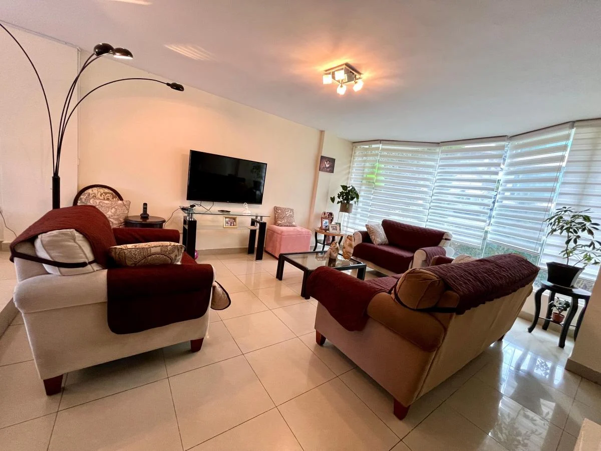 -Amplia sala con cortina tipo zebra