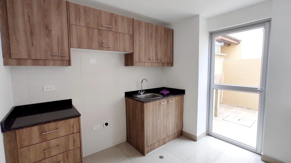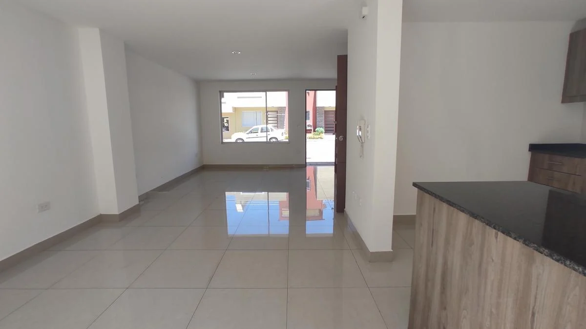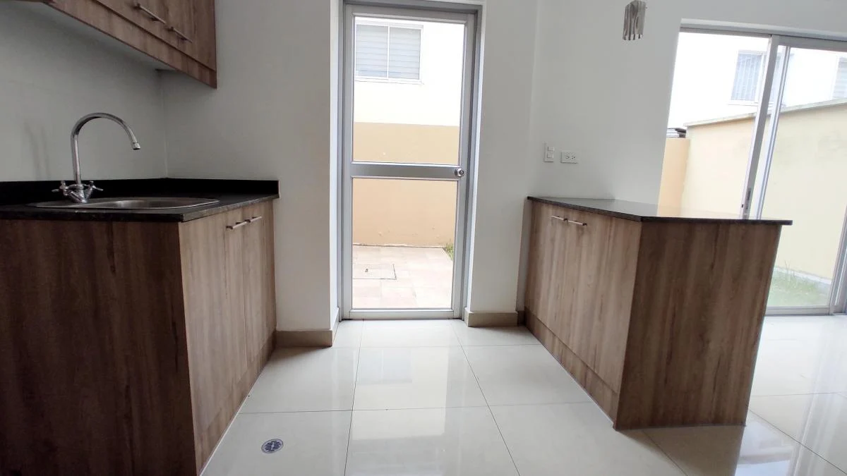 - Sala, comedor y cocina abierta con salida al jardín y área de lavandería.
