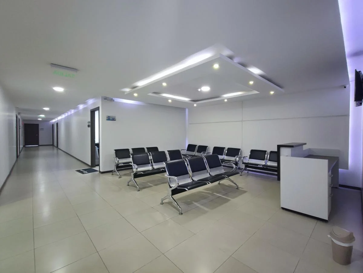 El consultorio se divide en dos ambientes con división de doble vidrio templado para privacidad, 1 baño adecuado con ducha, 1 parqueadero en subsuelo 1.