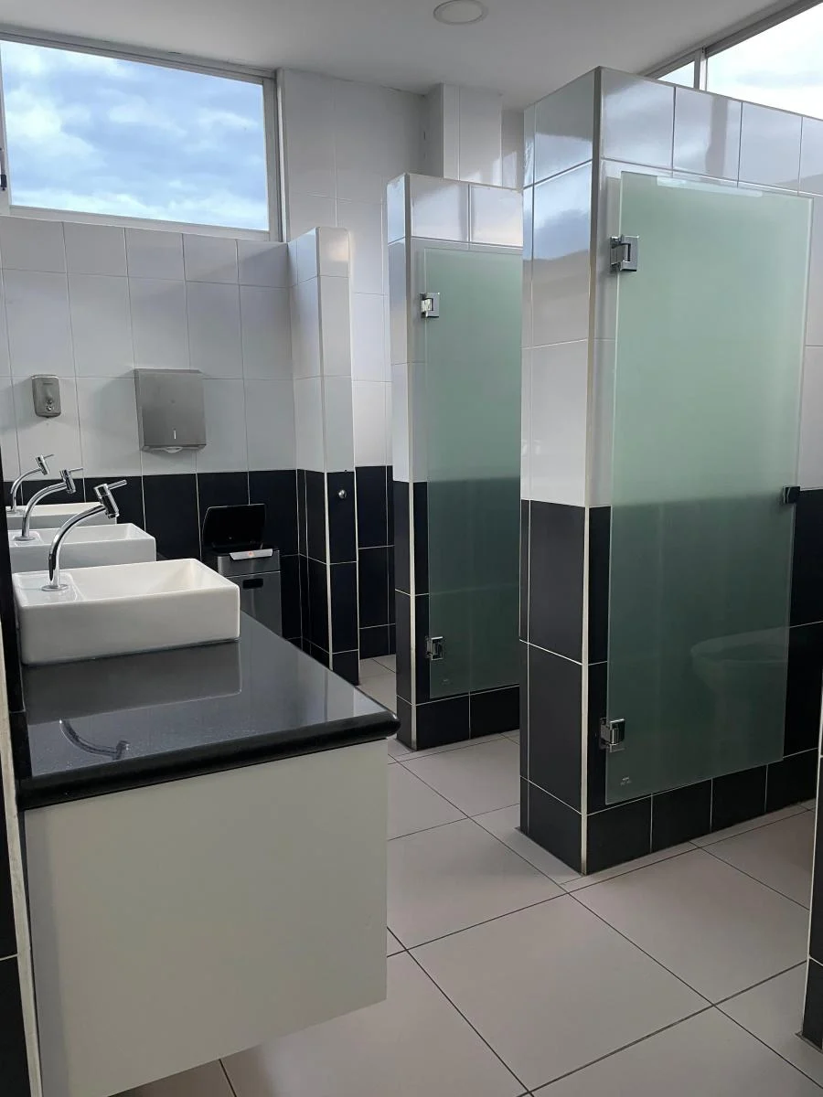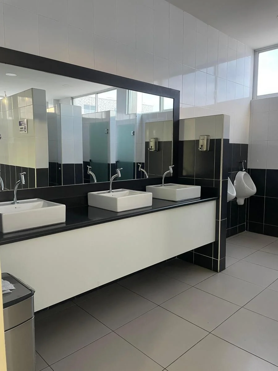 Cocina, bodega y baños para hombre y mujer, con sus divisiones (3 unidades en cada baño)