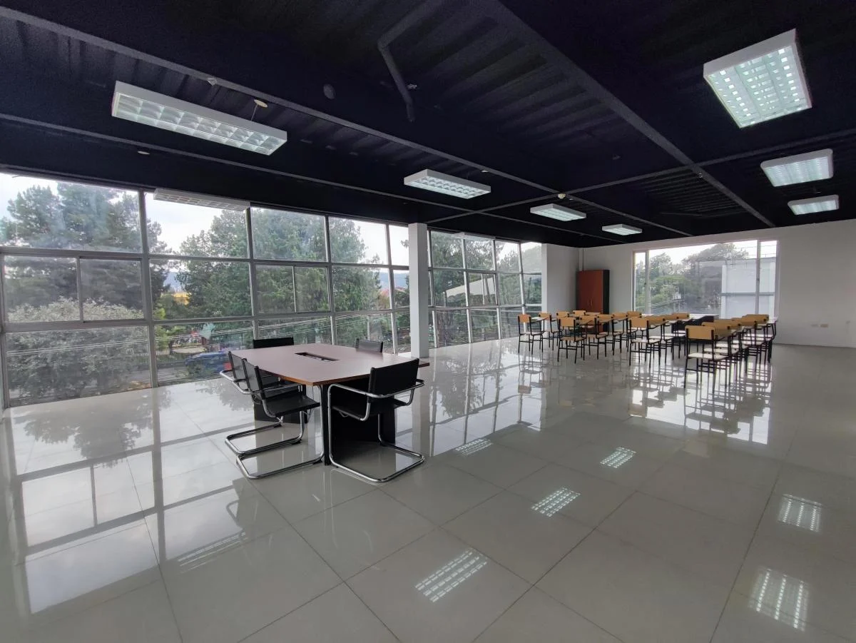 Cada piso consta de ventanearía de aluminio y vidrio. Además de espacios para oficinas, reuniones, gerencias, capacitaciones con divisiones modulares.