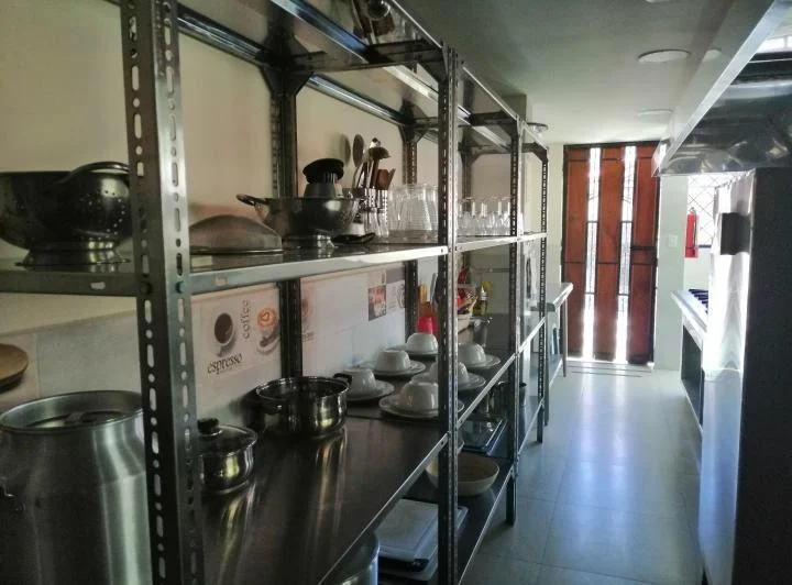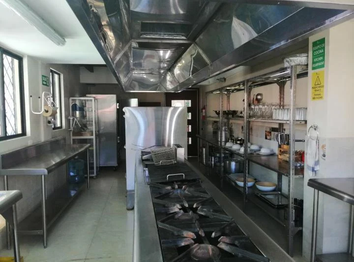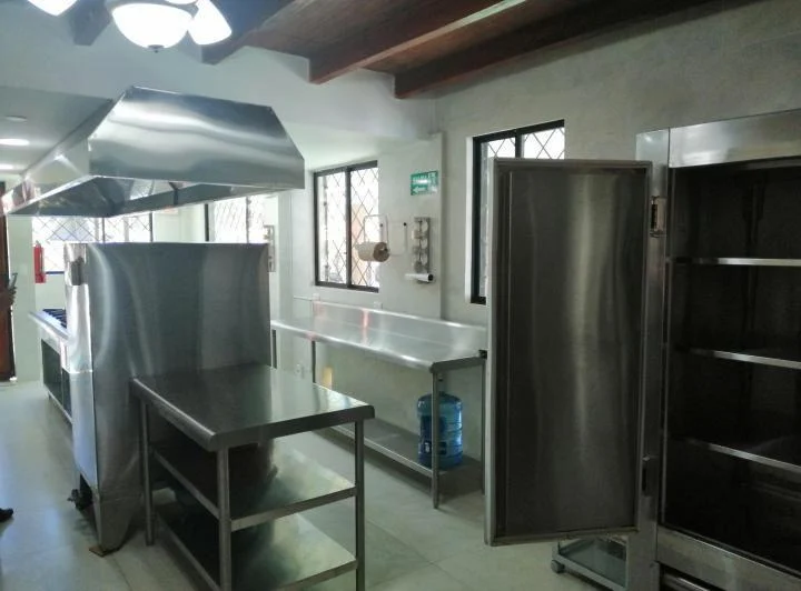 - La amplia cocina con equipo profesional completo, (cocina, horno, congelador, estanterías.)